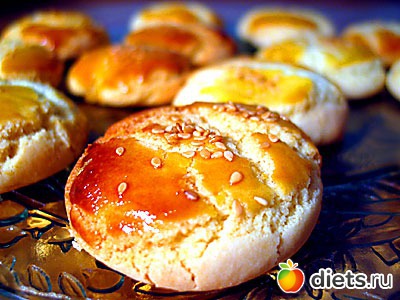 Способ приготовления: смешать все ингредиенты, сформировать шарики величиной с грецкий орех и выложить на смазанный маслом противень. смазать каждую печенюшку желтком и обсыпать ореховой крошкой.