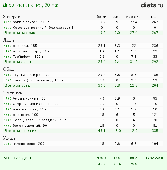 удивительно, что на 1200 ккал можно так обожраться... Я реально наедаюсь очень! И ем часто. Вообще, у меня такой азарт к здоровой пище! Повсюду выискиваю продукты правильного питания. Очень понравился, кстати, заменитель сахара фитпарад на природных компонентах. У него сладость гораздо приятнее.чем в чистой стевии. От настоящего сахара не отличить! Очень рекомендую!