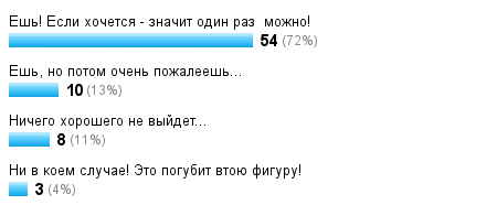 Настоятельно рекомендую делать такие поблажки (ни в коем случае не срывы) исключительно редко и подконтрольно, с тщательной дозировкой. Вы сами и никто более, чем Вы, не заинтересован в улучшении Вашей фигуры.