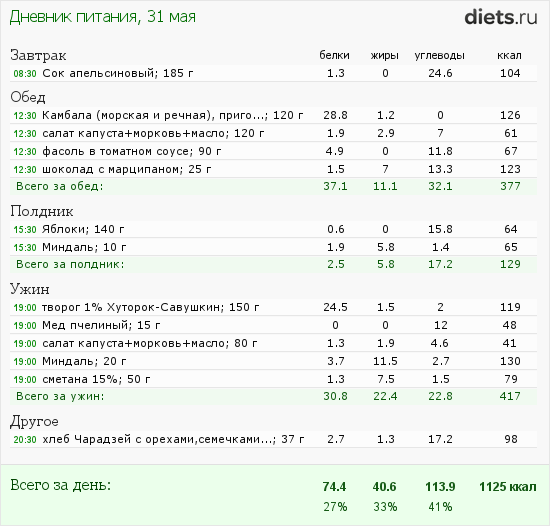 Калорийность продуктов