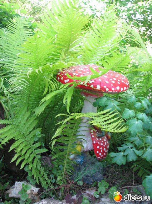 Мухомор не настоящий, это фигурка, достаточно большого размера.