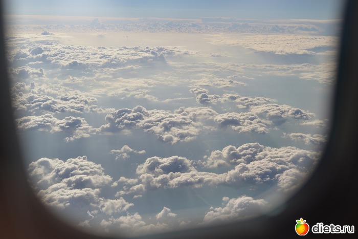 Ну и фото из окна самолета, чтобы продолжить тему заголовка: "По дороге с облаками, по дороге с облаками очень нравится, когда мы возвращаемся назад!"