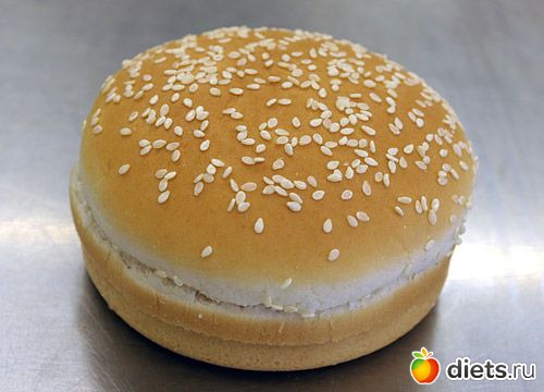 А вот еще одна фотография. Гамбургер, который находится слева, одна учительница показывает на своих лекциях о правильном питании как наглядное пособие. Он был куплен 12 лет назад. За это время он внешне практически не изменился, разве что немного помялась булочка. Правда, он приобрел странный неприятный запах. Рядом справа, для сравнения свежий гамбургер. Как говорится, найдите 10 отличий.