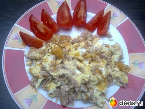 Ужин: омлет из яйца и двух белков с тунцом и помидоркой