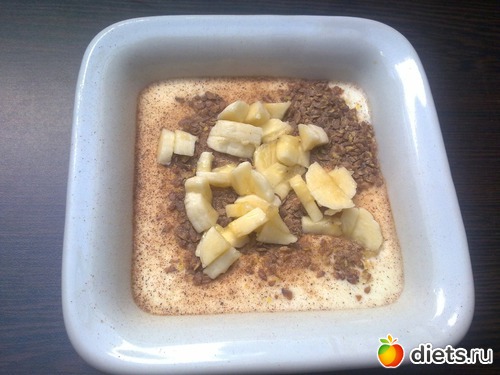 Полдник: йогурт 1,5%, льняные семена, чуток корицы и мааааленький кусочек банана (остался после дочи, жалко было выбросить, а еще день в холодильнике не выдержал бы)