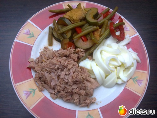 , доедала то, что оставалось: рагу овощное, тунец в собственном соку, белки вареные