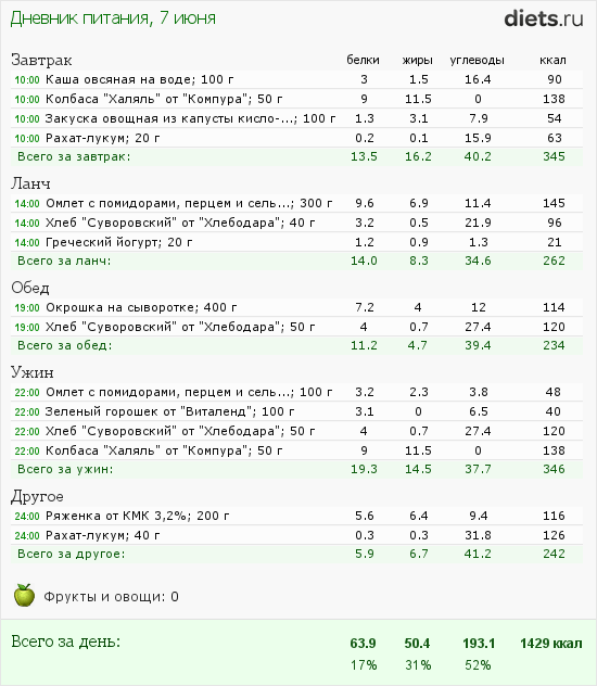 Калорийность продуктов