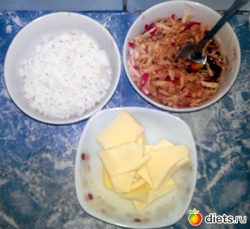 Рис, сулугуни и натертая редиска.