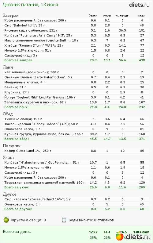 По питанию сегодня все было бы очень даже не плохо, если бы не 2!!! каких-то 2 печеньки, но так испортили мне всю статистику.