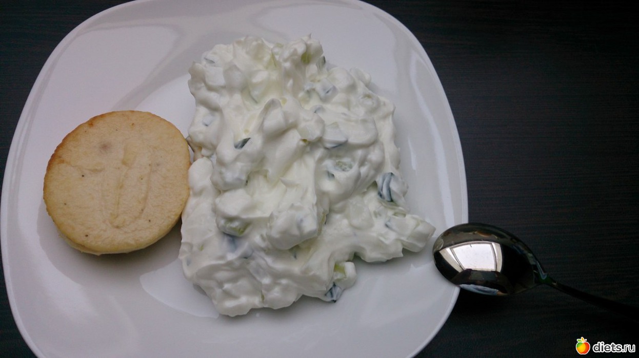 На ужин у меня как раз была подруга, ее кормила бешбармаком, муж тоже его доел, я же ужинала творожной запеканкой с цветной капустой, творогом с огурцом и белком вареным. По вкусу мне это очень напомнило сацики греческое. Не хватало только чесночка чуточку, зеленого лука и немного приправ еще. Завтра повторю обязательно, понравилось очень.
