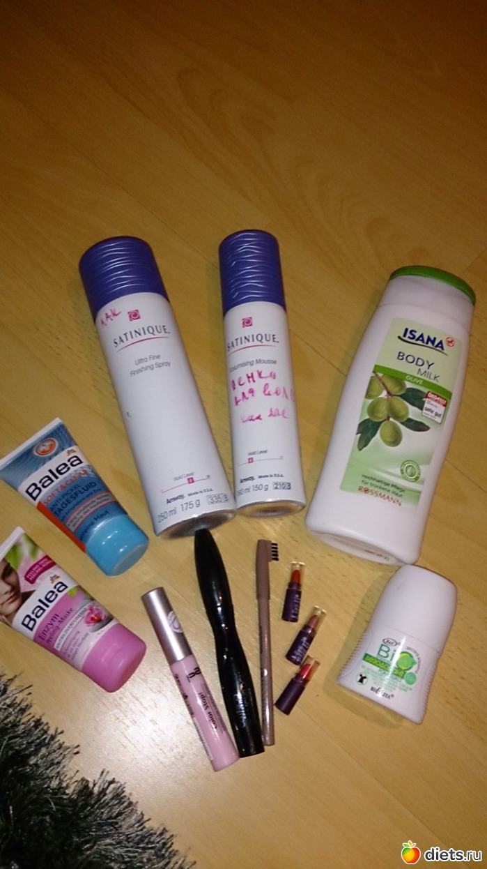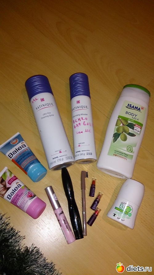 И еще несколько мелочей: лак для волос, пенку для волос от Амвей, тушь, карандаш для бровей, пробники помад, маску для лица и крем от прыщиков, лосьон для тела... Буду теперь красЫвой!!!