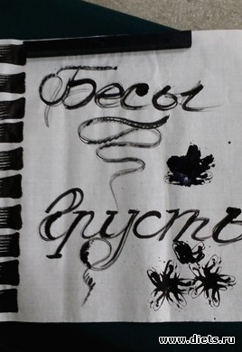 Написать любое подручными материалами - сломала палочки для еды и оторвала кусок гофрированной бумаги от стакана с кофе. Собиралась написать слово "бессоница", но поняв что оно не в мещается, по этому сократила...