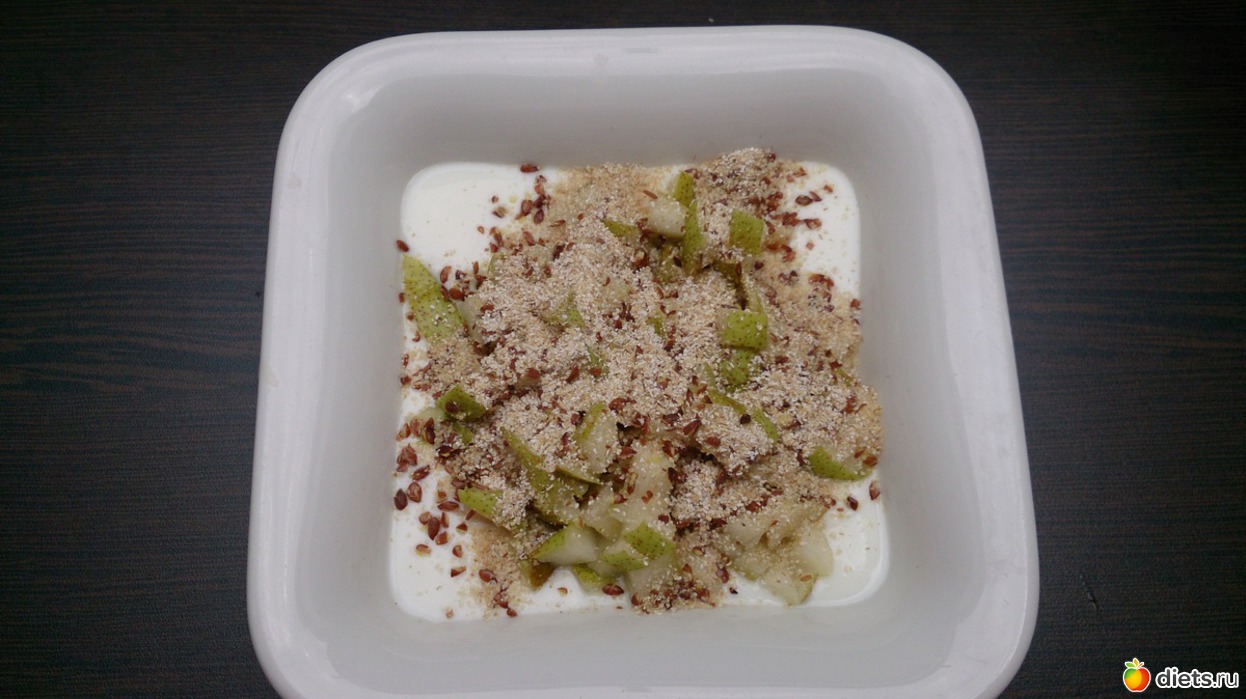 Ланч: йогурт с грушей, льняными семенами и овсяными отрубями