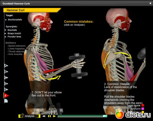 Недавно купила себе программу, в которой очень подробно рассказывается о технике выполнения упражнений и скелетик с мышцами показывает, как их делать, какие мышцы работают, какие могут быть ошибки и т.п. Сегодня начала осваивать.