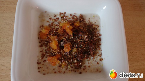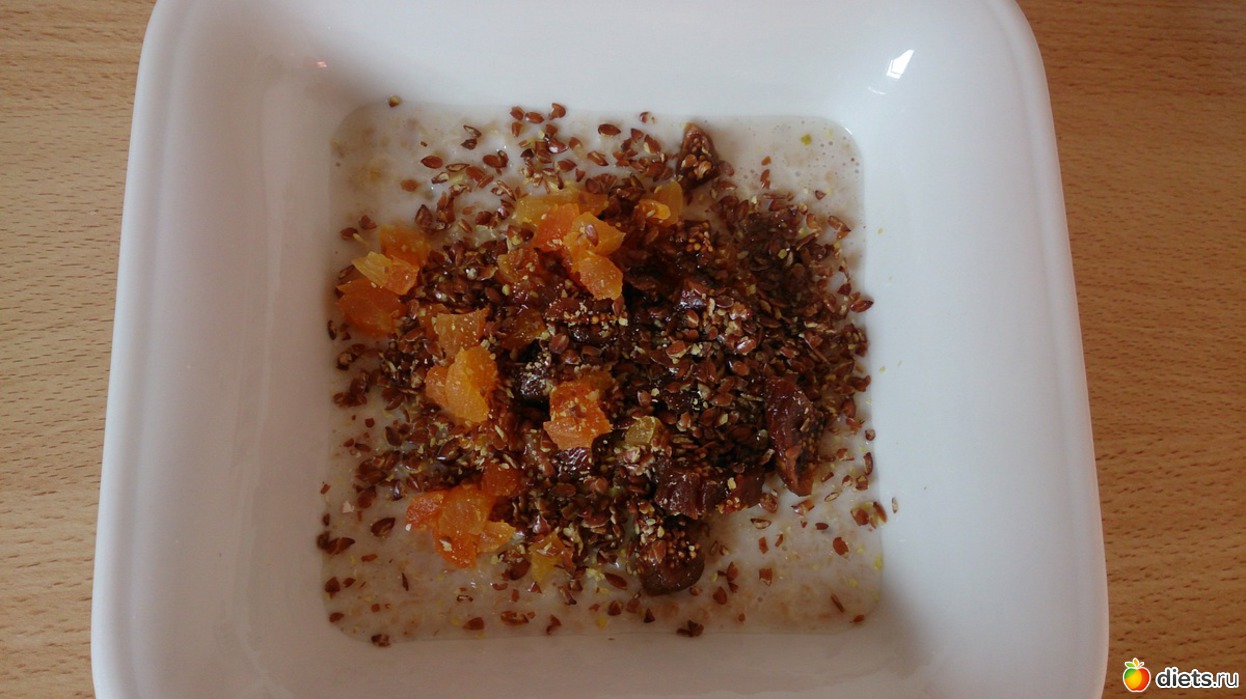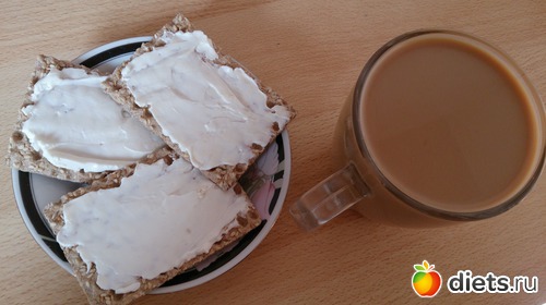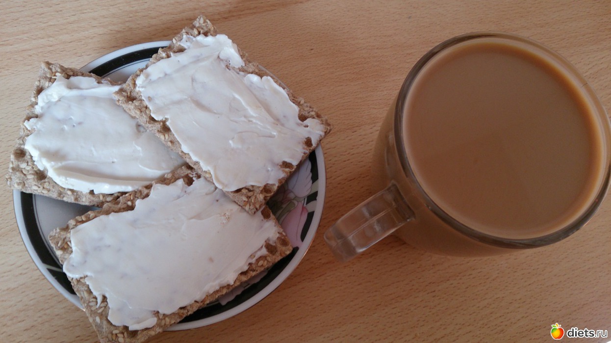 Завтрак: овсяная каша на молоководе с курагой, инжиром, льняными семенами, и чуть подсолнечного масла, кофе с молоком и кубиком сахара, хлебцы с филадельфией