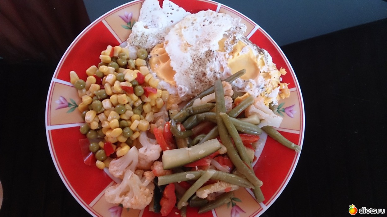 Обед: 2 яйца, микс мексиканский, тушеные овощи