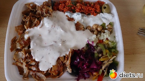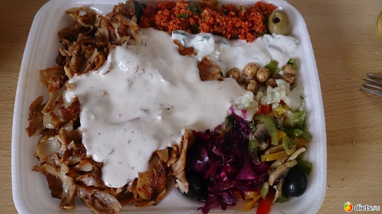 Ужин: турецкий дёнер (курица, овощи, кажется был нут и еще что-то)