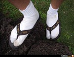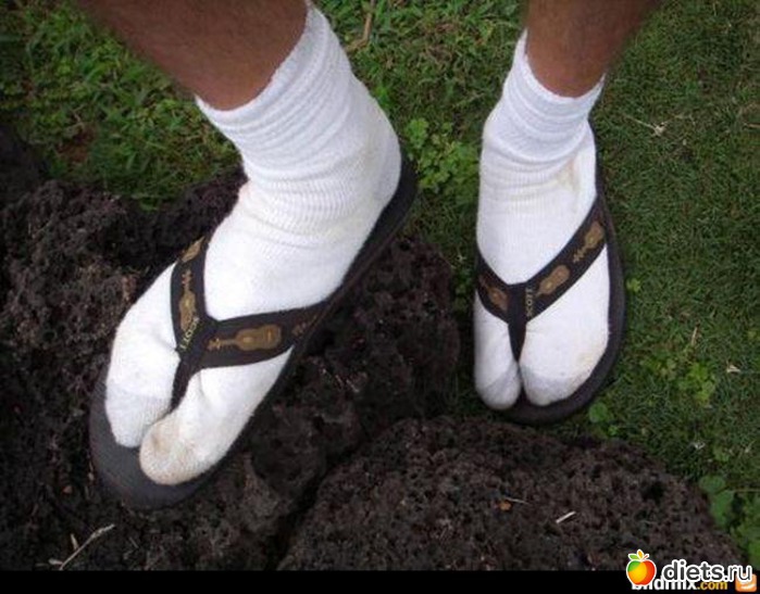 как можно одевать носки под сланцы? Я своего ругаю, под кросы ему специально покупаю спортивные, а тут натянут носки по самые помидоры и вперед. Только меня это раздражает?