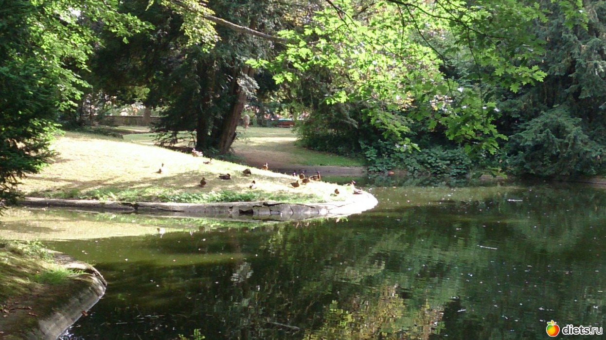 Еще мы сегодня с дочей домой шли через наш парк, он очень красивый. Помню, когда только приехала в Германию и муж меня повел туда прогуляться, я была в восторге, особенно меня поразил маленький прудик и плавающие в нем уточки. Иногда я приходила и кормила их. А зимой, когда через парк ходила на курсы, видела не раз белочек...