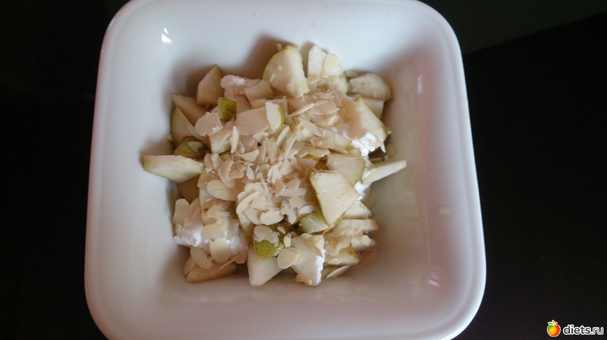 Ланч: творог с грушей, миндальными хлопьями