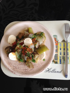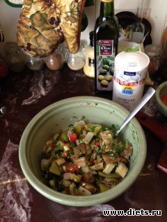 Этот салат можно есть и теплым и холодным. Сегодня я еще добавила в него сыр моцарелла. Мне понравилось.
