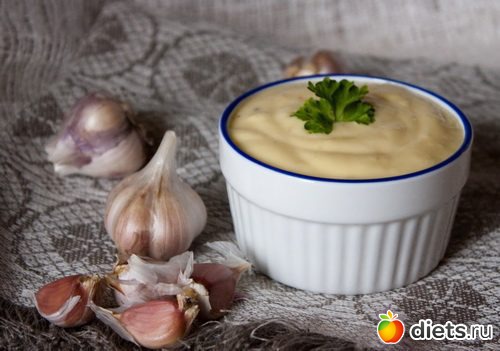 В глубокой миске разотрите венчиком натертый чеснок, желтки, соль, перец, лимонный сок; мешайте только в одном направлении. Не прекращая мешать, влейте масло – сначала по каплям, затем струйкой, пока соус не превратится в эмульсию.
