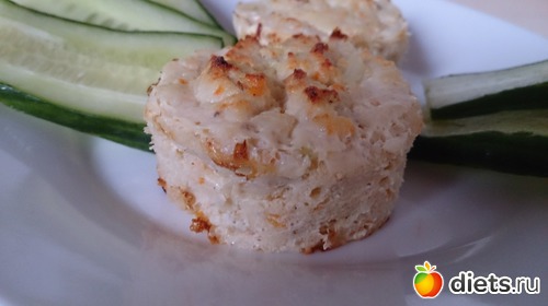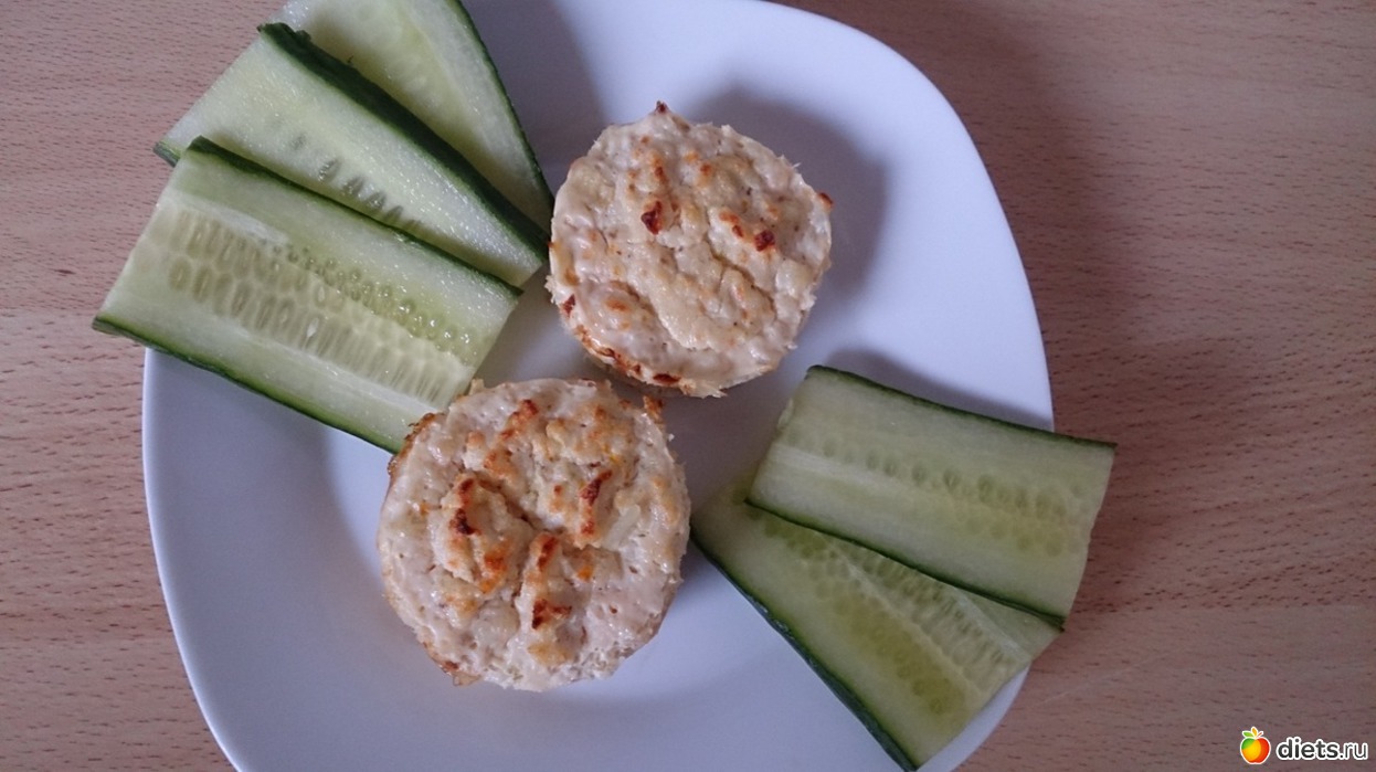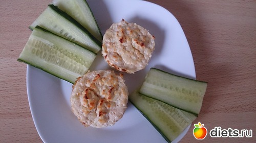 Ужин: Вот весь послеобед думала, что бы приготовить на ужин необычное. Хотелось рыбу, чтобы побольше белков было на ужин, но просто пожарить, отварить или запечь было не интересно. И тут пришла идея... Рыбное суфле!!! Получилось очень вкусно, сочно. Сначала в формочках столько жидкости собралось, что думала не получатся, а они получились... и огурец. Даже доча немного покушала суфле.