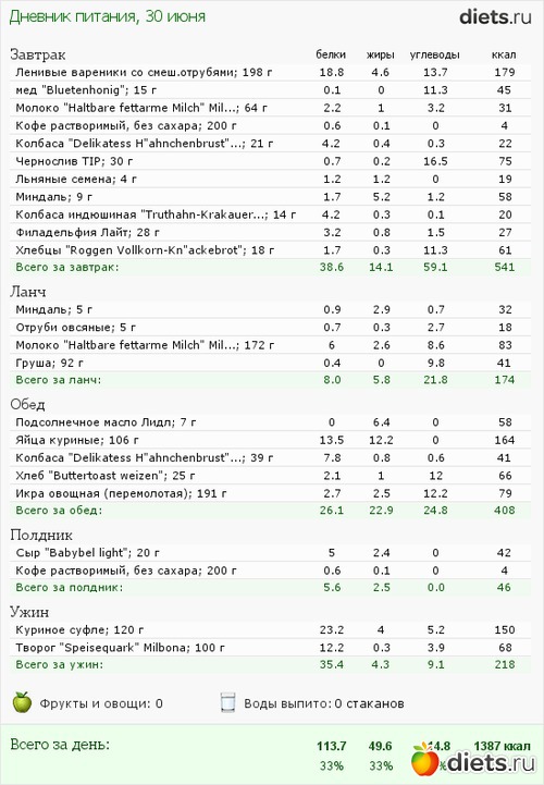 Сегодня хотела сделать белковый день, но не вышло, замоталась в уборке дома, что даже обед у меня получился в два захода и уже почти в 4 часа. Еще муж постоянно отвлекал. Сейчас решаем вопросы с билетами в Россию в августе. Заказали в интернете, завтра перепроверим все. Еще завтра вечером мне на прием к врачу. Дождалась наконец-то... Буду сегодня снова краткой, так как хочу включить передачу или фильм какой-нить и в это время заняться ногами, а то капец...даже шлепки стыдно одеть, хорошо сейчас прохладно