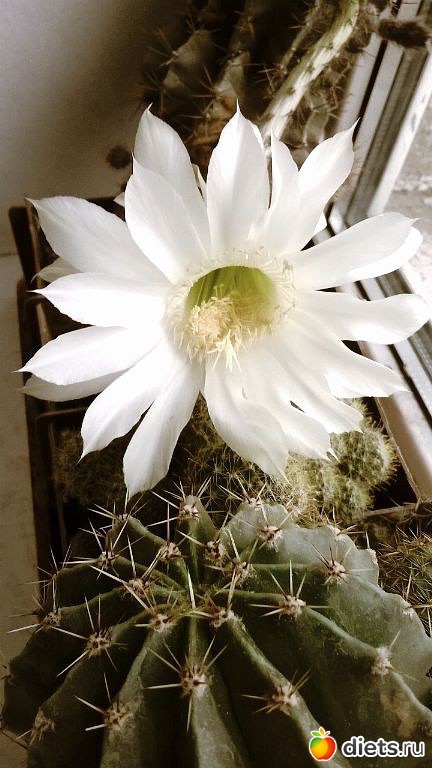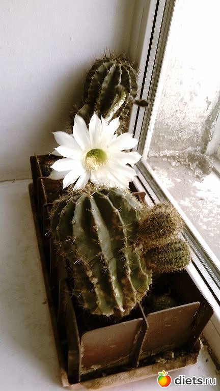 ) кактус зацвел, таким здоровенным, красивым, белым цветком! Не пахнет