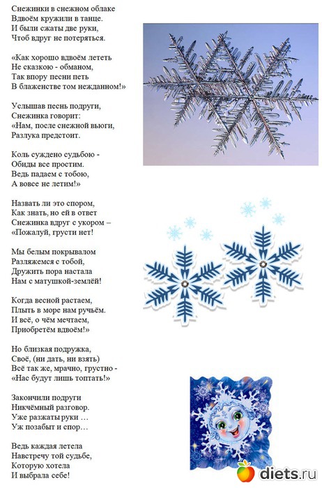 В. Шебзухов «Две снежинки» Конкурс детской поэзии Читает Дарья Чубаро Петербург 2014 https://vk.com/video93406917_169419995 http://nevsevideo.ru/v/OTM0MDY5MTdfMTY5NDE5OTk1fDI0OTA0OQ/ Снежинки в снежном облаке Вдвоём кружили в танце. И были сжаты две руки, Чтоб вдруг не потеряться. «Как хорошо лететь Не сказкою-обманом, Так впору песни петь...