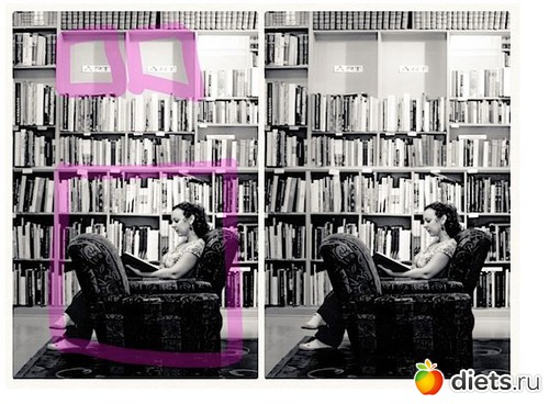Квадрат – идеальная форма для кадра, и кроме того составляют большой интерес в повторении. На этой фотографии центральный объект вписывается в квадрат, повторяющийся рисунок из книг и полок на заднем фоне также имеет квадратную форму.