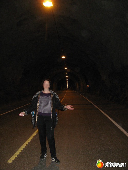 Вот это тот самый туннель,1070 метров длиной. Внутри холодно, но зато нет ветра.
