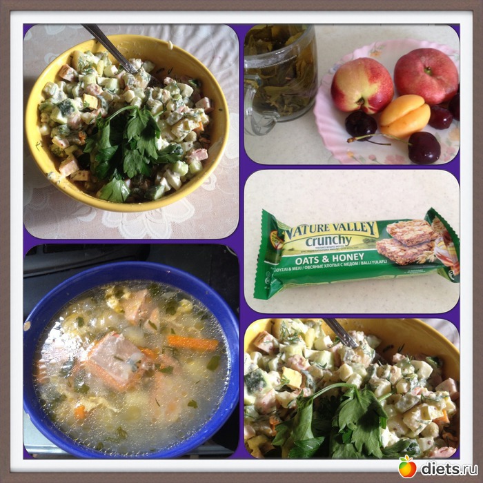 Кушала сегодня в целом правильно, кипяток утром, салат со сметаной и горчицей, суп с семгой, фрукты, кефир на ночь.