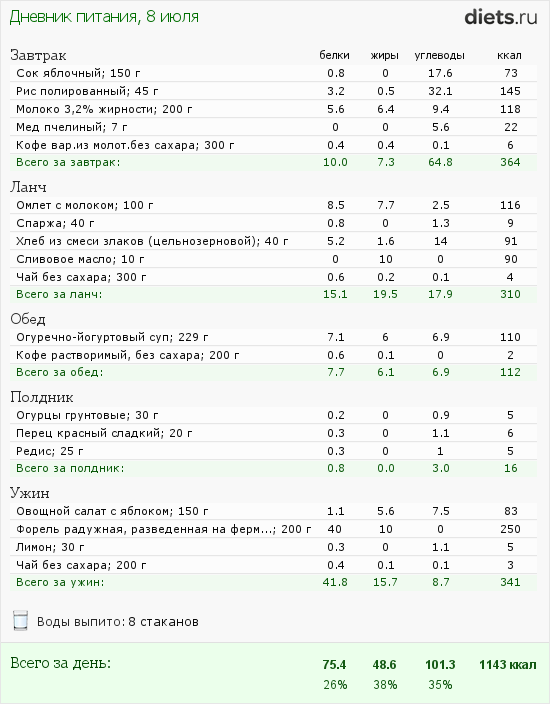 Питание было такое. Я без напитков покажу, хорошо? Все подробности - в дневнике питания.