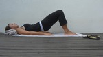 6. Лежа на спине, ноги согнуты в коленях, стопы на ширине плеч, делаем полумостик, приподнимая таз и задерживаясь в верхней точке на 10 секунд. 5-7 раз.
