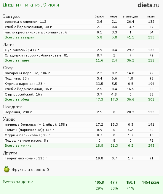 Калорийность продуктов