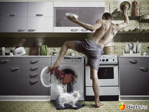 ДЕНЬ 4. Вечером решил прибраться. Ужас! Тридцать две грязные тарелки — и это на пятерых-то! Что они в них раскладывали, не представляю, но вонища та еще. Я сначала все это загрузил в посудомоечную машину, но потом вспомнил, что не умею ее включать. Надо сегодня пораньше лечь спать, завтра на работе сложный день.