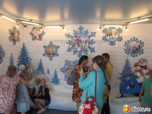 У входа чеканили монеты с символикой Вотчины, затем нам провели экскурсию.где мы узнали.что все письма читаются, раскладываются по областям, на самые интересные отвечают и высылают подарок. Сейчас на 1 июля уже зарегистрировано 2 641 595 писем!!!