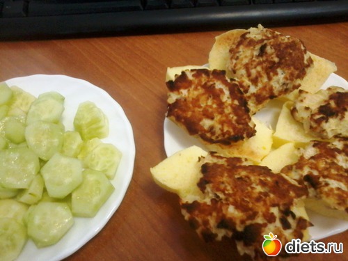 Обед: Бутеры Дю (омлет + рубленые котлетки из куроградки) + огурчик свежий