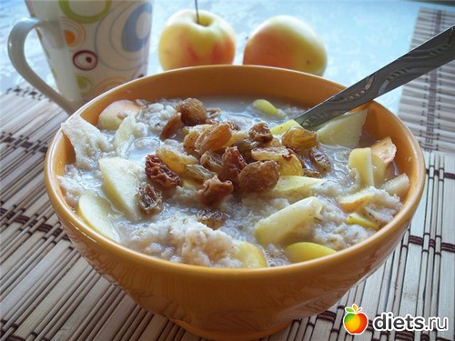 на завтрак у нас была овсяная каша с яблоками. Мой любимый - человек ритуала. Завтрак у него неизменен.