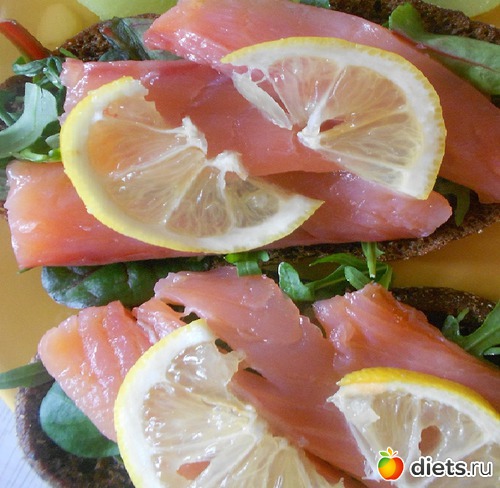 Ланч - тосты с семгой (картинка из моего архива, сегодня был овсяный хлеб).