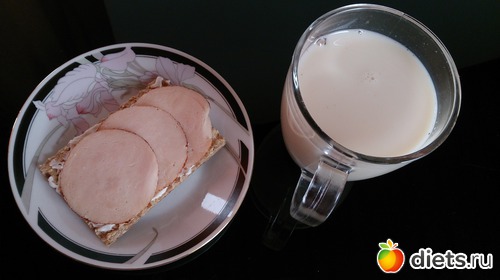 Ланч: кушать особо не хотелось, но надо было, поэтому молокочай, хлебец с филадельфией и ветчиной куриной