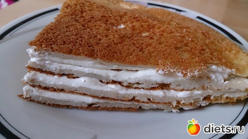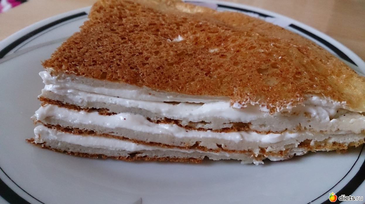 с омлетом все просто, взяла яйцо и два белка, добавила туда сахарозаменитель, взбила, поджарила с двух сторон, выложила на тарелку целиком, промазала творогом (у меня он кремовой консистенции всегда), разделила на 4 части как пиццу и сложила слой на слой...