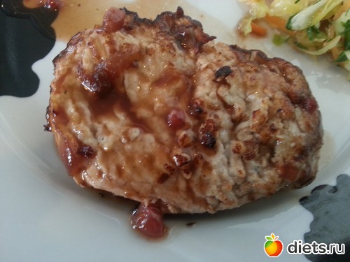 Обед- Кусочек индейки, тушеной в можжевеловом соусе (кафе. Убеждали, что только лук, можжевельник и индейка, без масла)