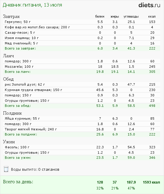 Но углеводов немного не хватает. У меня коридор 200-227 должен быть