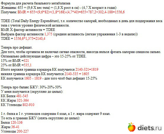 Расчет нужного мне КБЖУ Вот как я рассчитываю необходимое мне КБЖУ. Знаю люди, гляньте, пожалуйста, может я не права