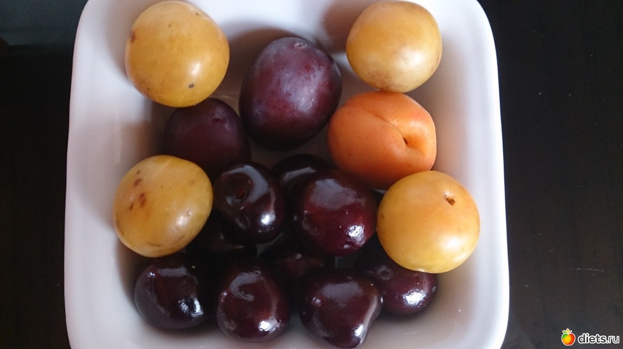 Ланч: фрукты (соседка целую миску принесла, сегодня половину подружке отдала), сливы, алыча, абрикос, черешня