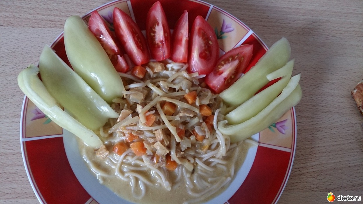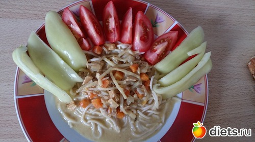 Потом был обед: китайская вермишель с курицей карри по-тайски (не готовила сама, с банки, на прошлой неделе в магазине было много китайской продукции и купила на случай, если будет лень готовить)