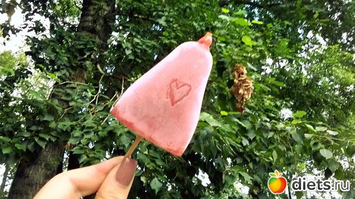и на вкус, и чисто психологически, вредности нельзя, а ты довольная точишь мороженое! В изготовлении прям примитив: 1 банан, 7 клубничек, водичка. У меня 6 штучек получилось. Из-за банана у них очень приятная текстура получилась