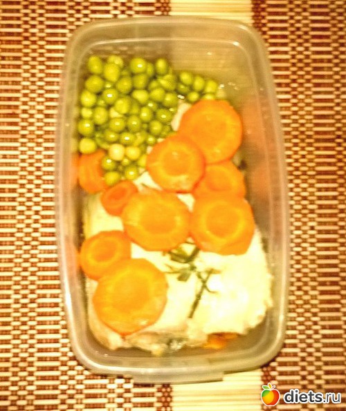 А на обед запечённая с тархуном и морковкой камбала, и зелёный горошек (консервированный, каюсь